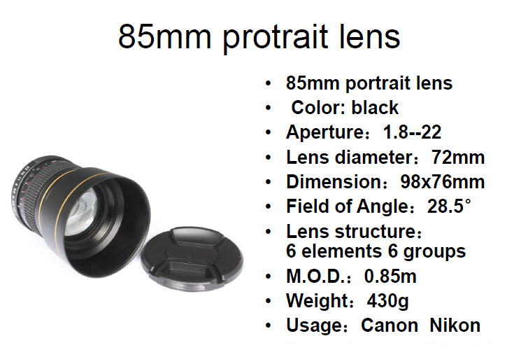 85 mm F1.8 Canon Nikon-lensspecificatie