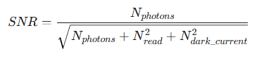 De signaal-ruisverhouding (SNR) in ISP-algoritmen kan worden beschreven door: